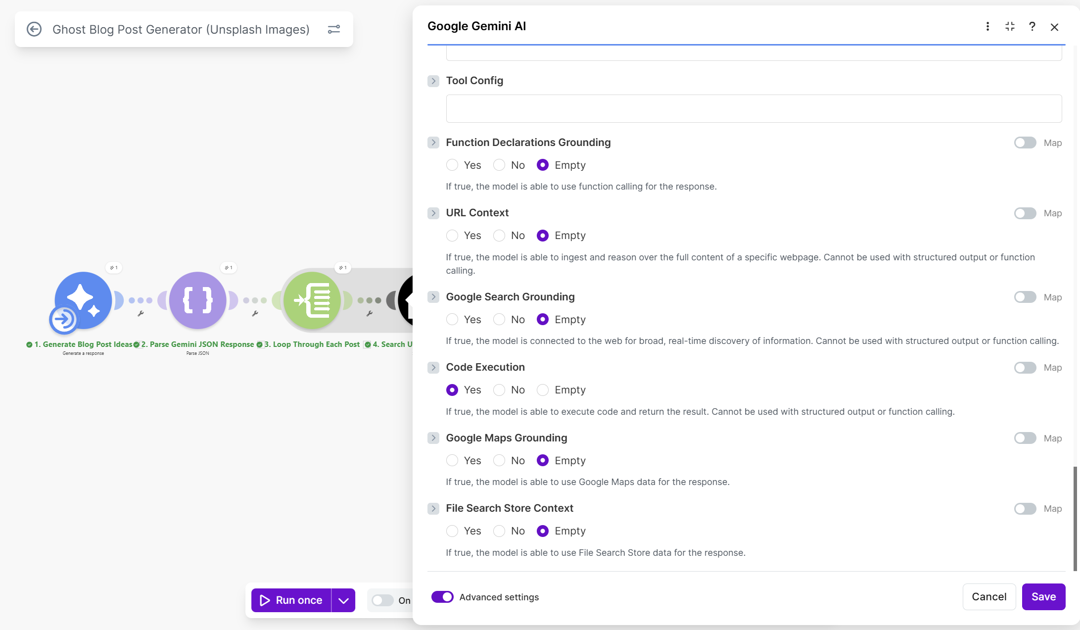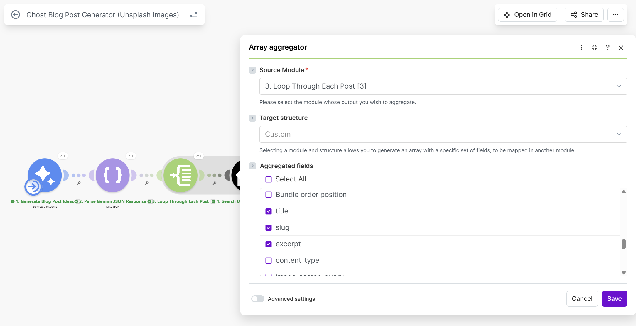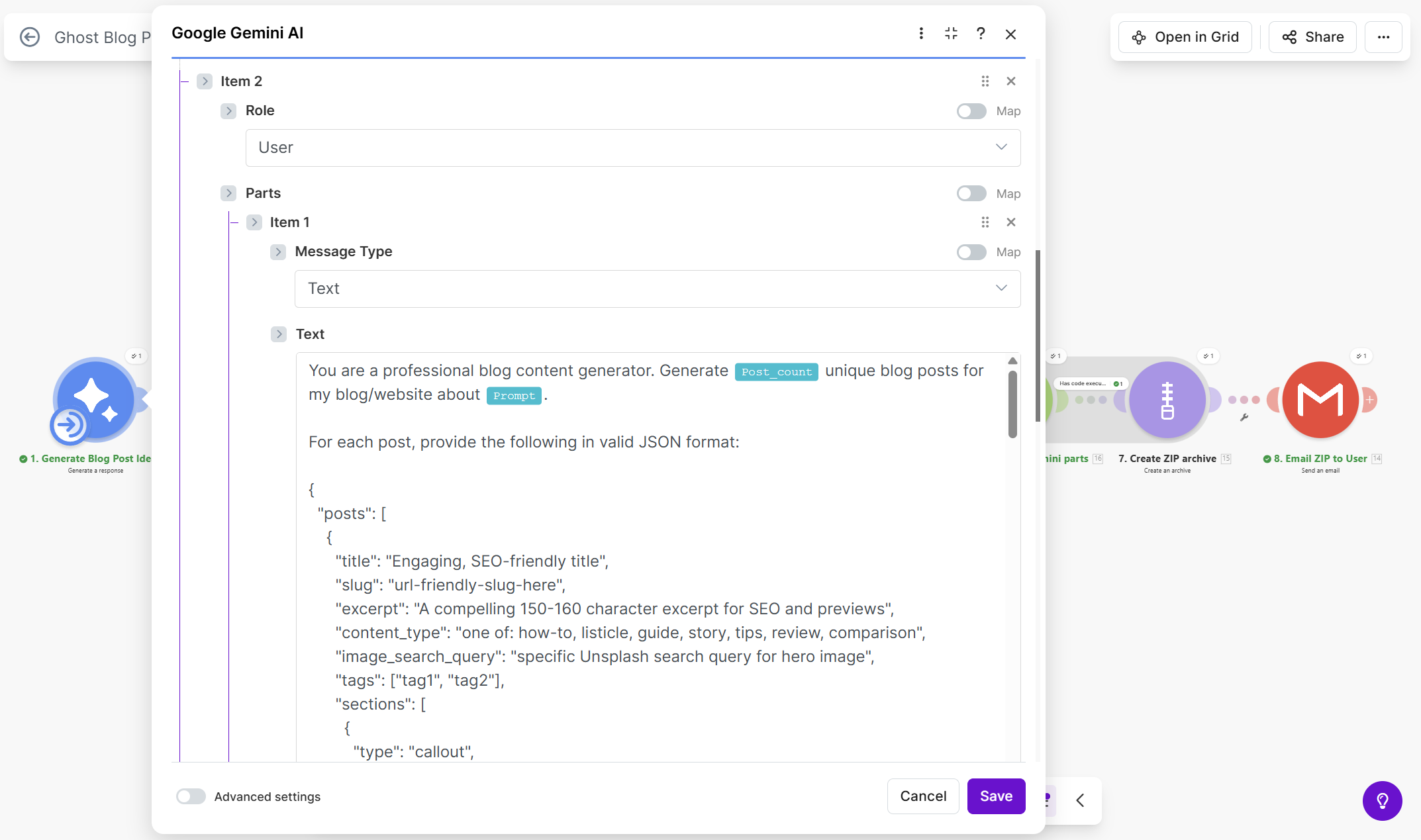 Step 2: Add the first Gemini module (generate posts)