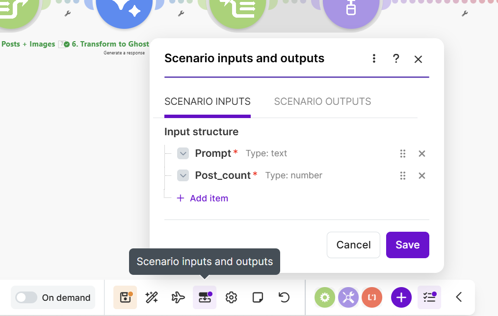 Click the three dots at the bottom of the screen and select Set up scenario inputs.