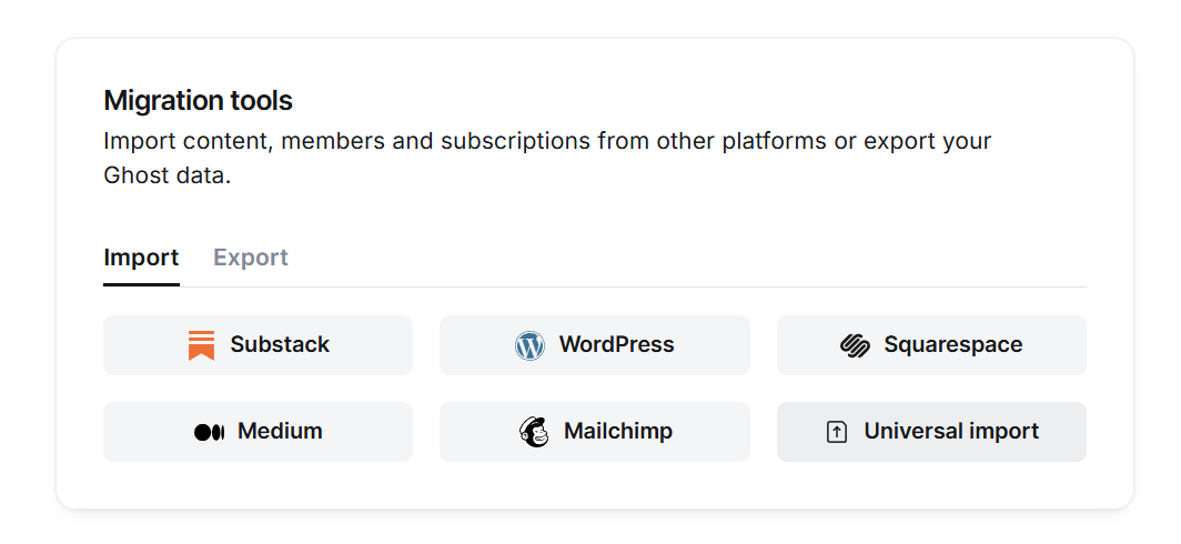 - In Ghost Admin, go to Settings > Migration Tools