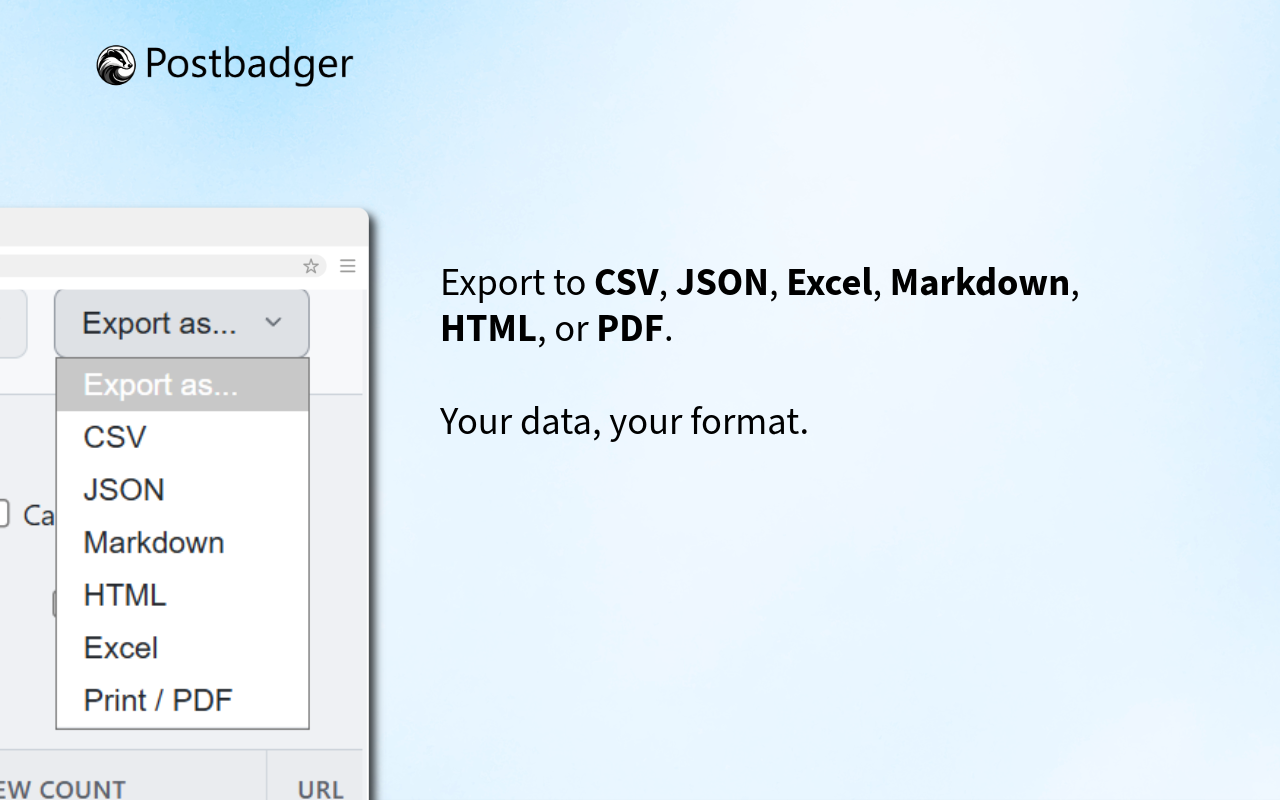Postbadger offers several export formats. Here's how each performs for AI training: