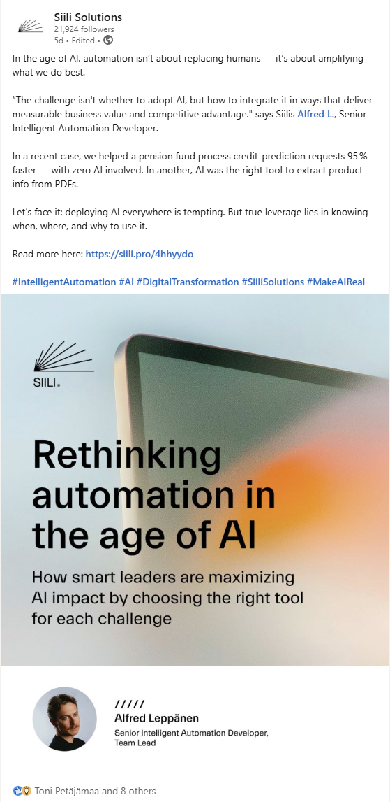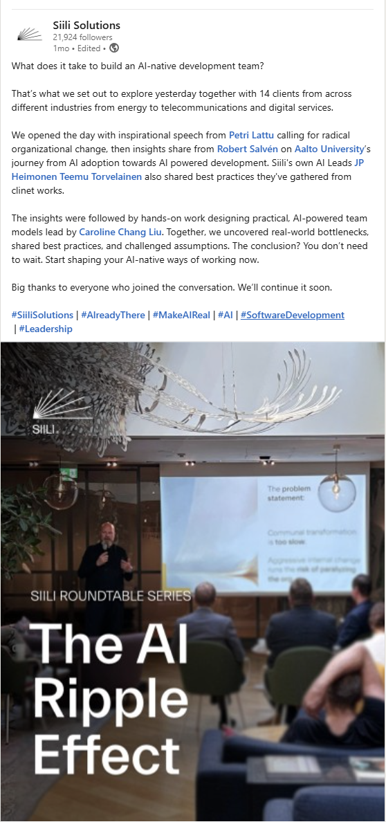 I took Siili Solutions' AI-Powered newsletter from zero to 6,600 engaged professionals in under a year, transforming it into a powerful engine for lead nurturing and thought leadership. This achievement is a testament to my ability to not only write compelling B2B copy but also to strategically scale content operations for measurable business impact.
